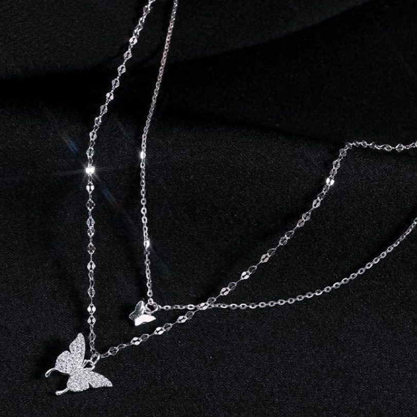 きらきらの2匹の蝶が胸元を華やかに舞うネックレスです。