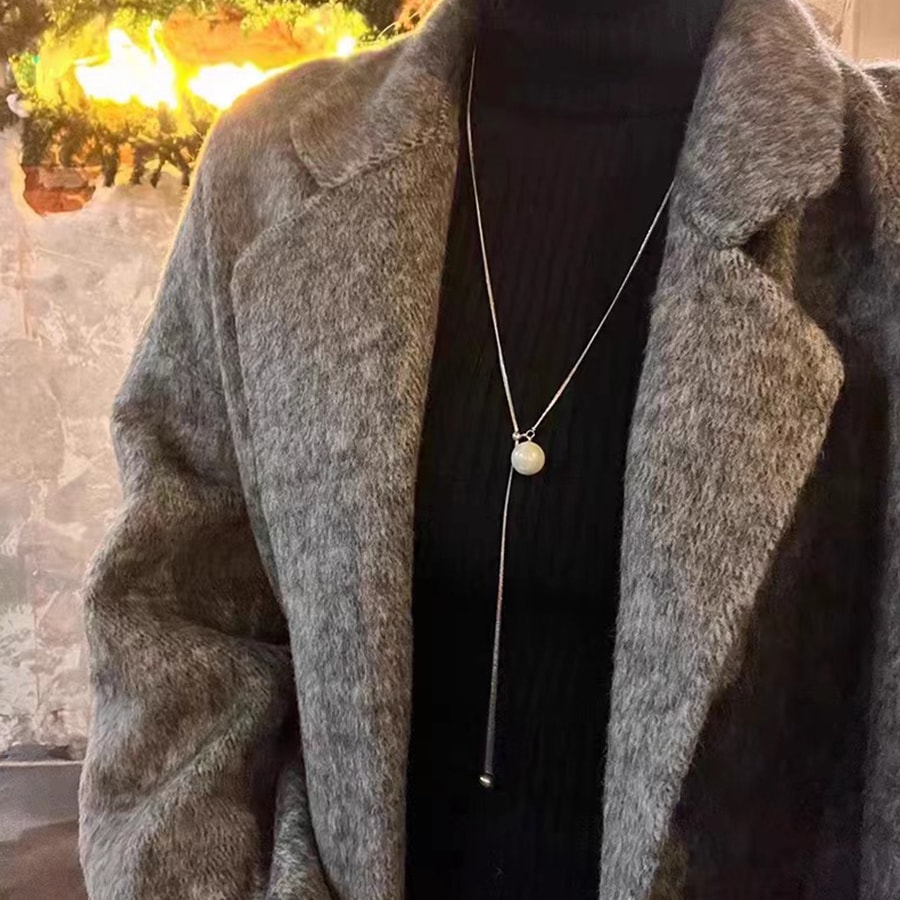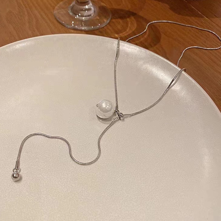 自由にパールを動かして好みのシルエットに調節ができるYラインのシルエットが美しいループタイネックレスです。