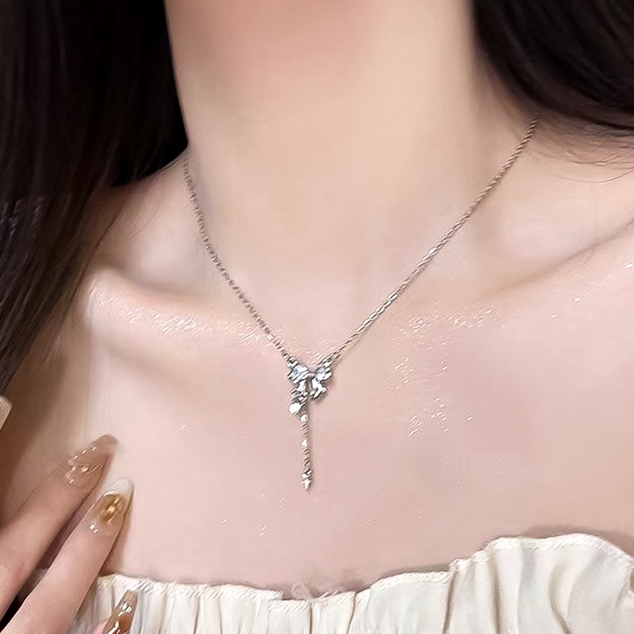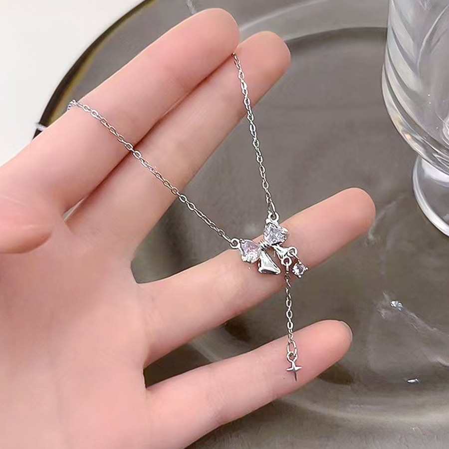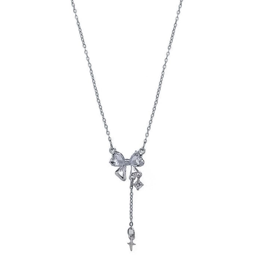 シルバーのリボンが大人可愛いネックレスです。