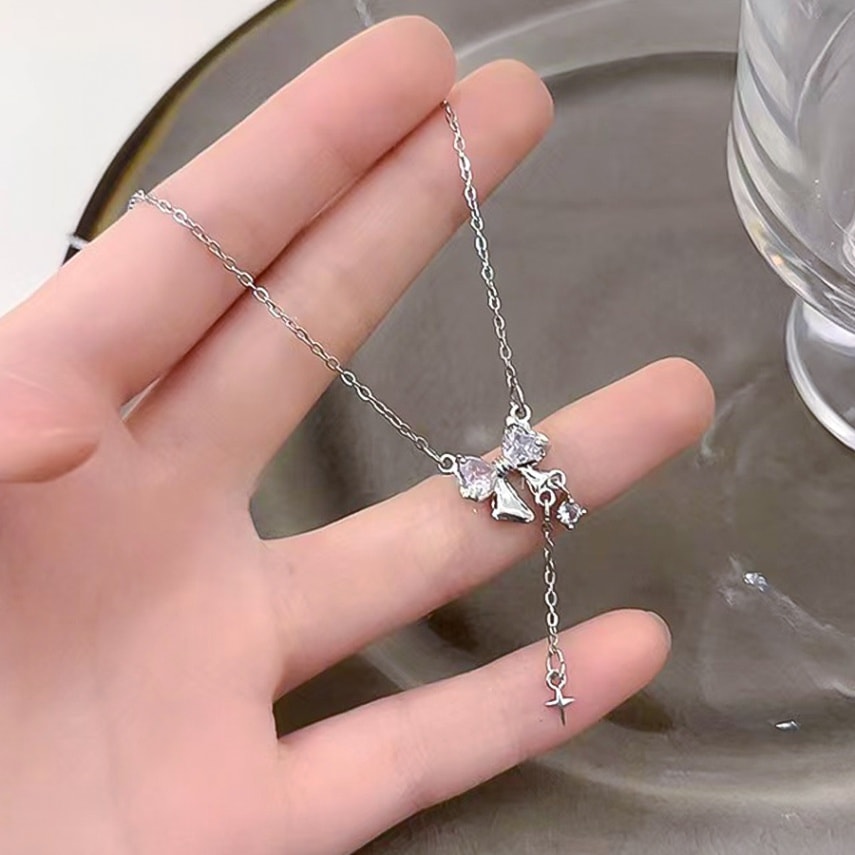 リボンストーン チャーム ネックレス