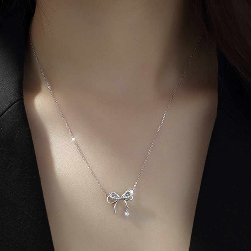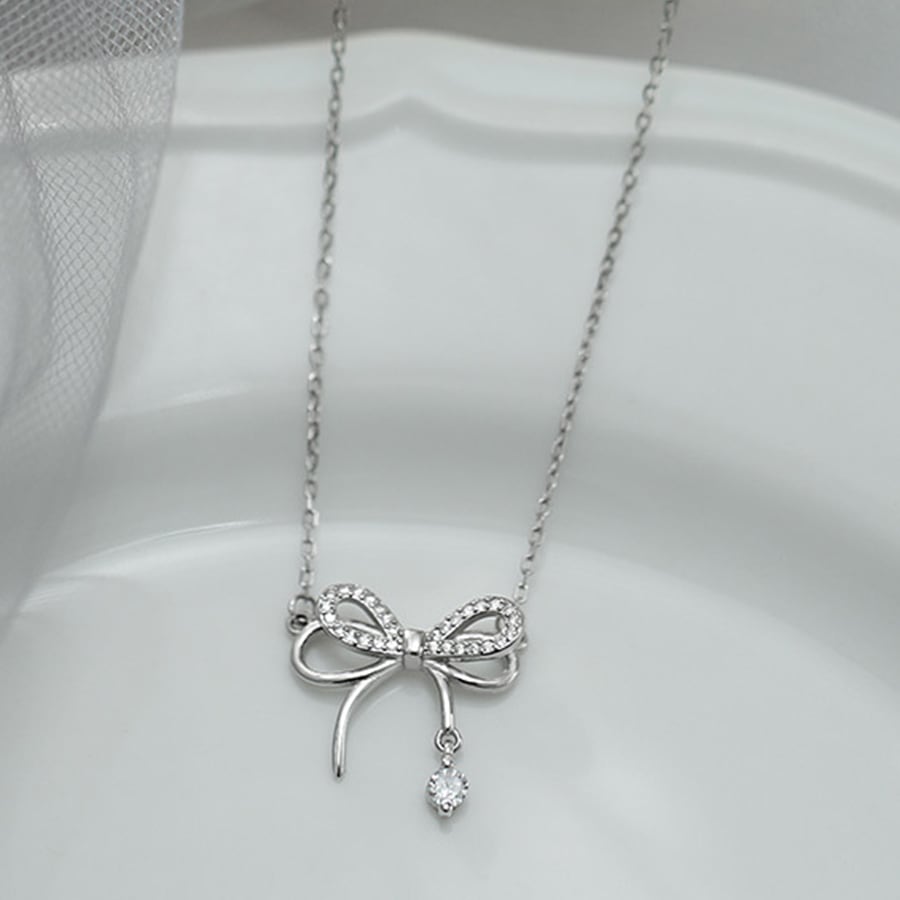 ダブルリボンモチーフに付いている一粒のストーンが揺れてきらめきます。