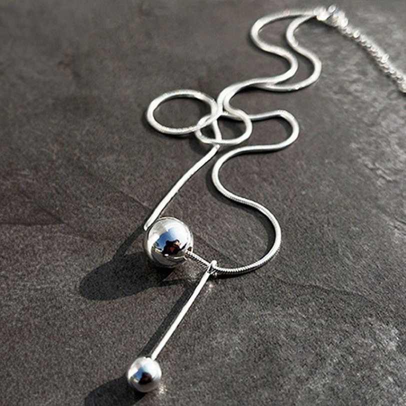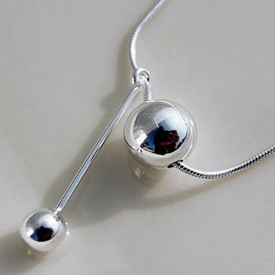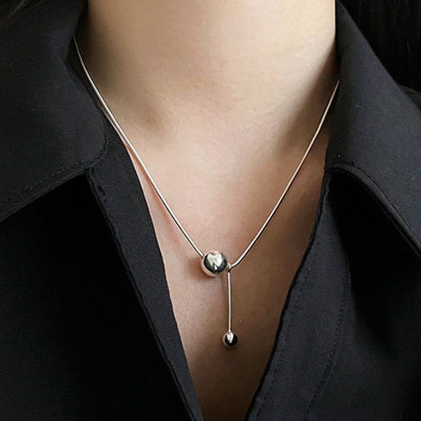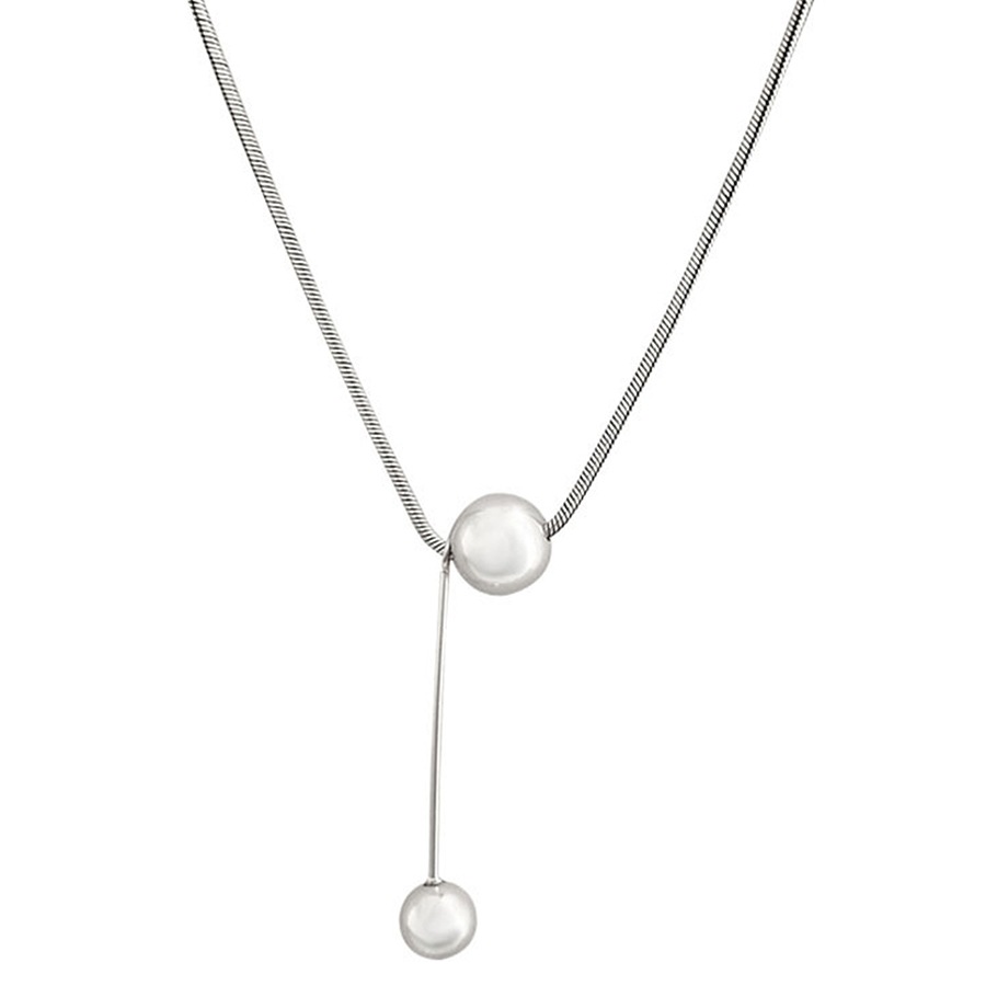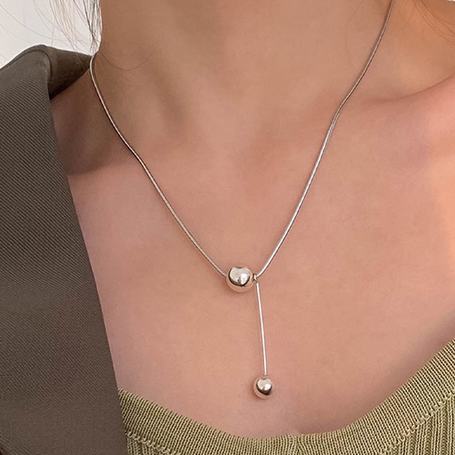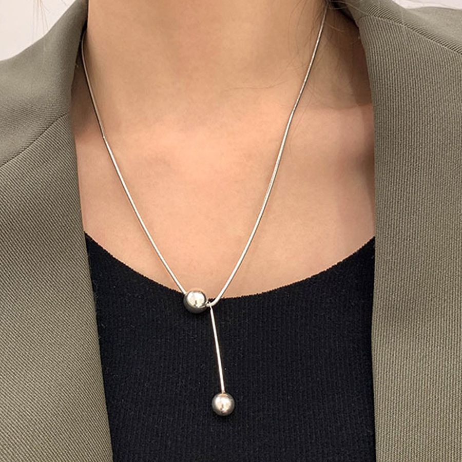 トップに大小2つのシルバーボールをあしらったシンプルなネックレスです。