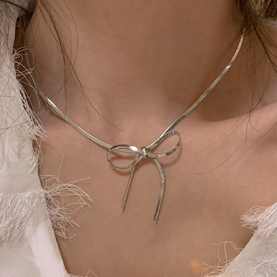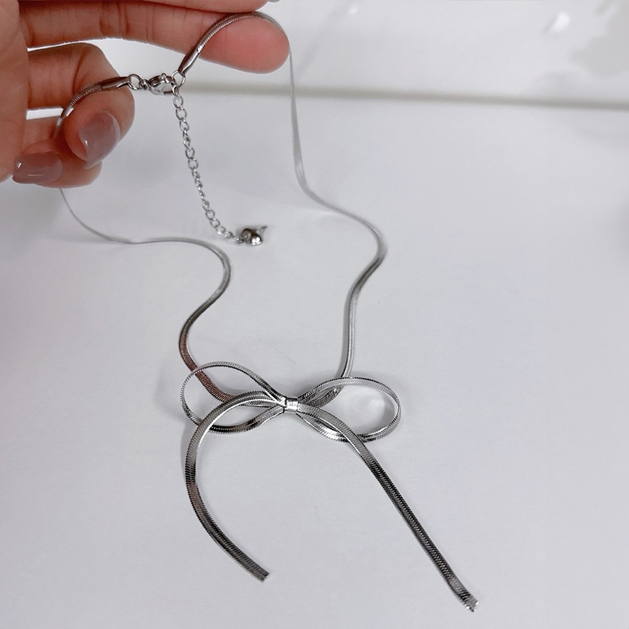 スネークチェーンでリボンを結んだデザインのネックレスです。