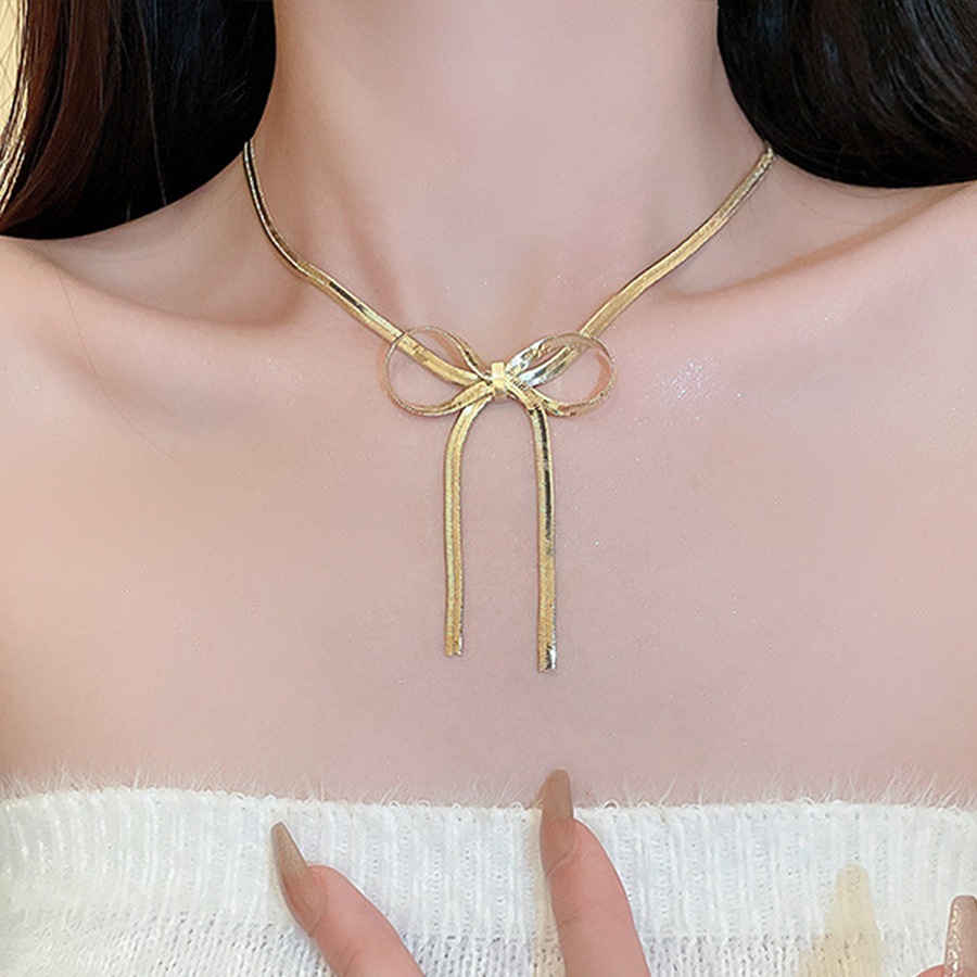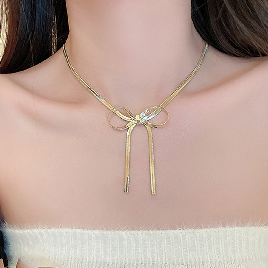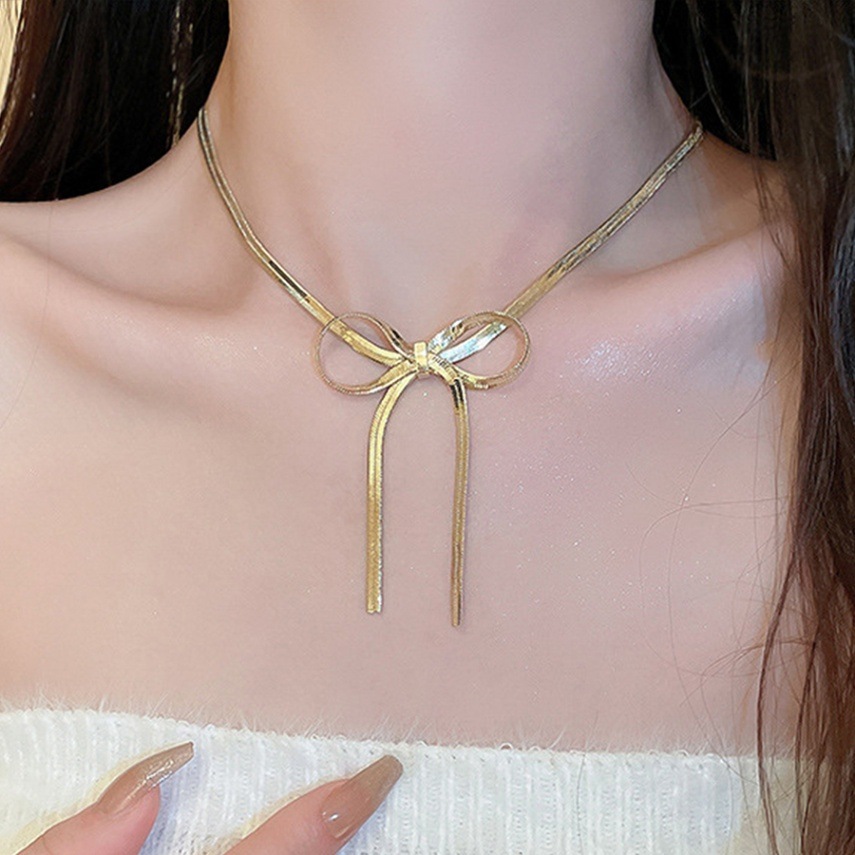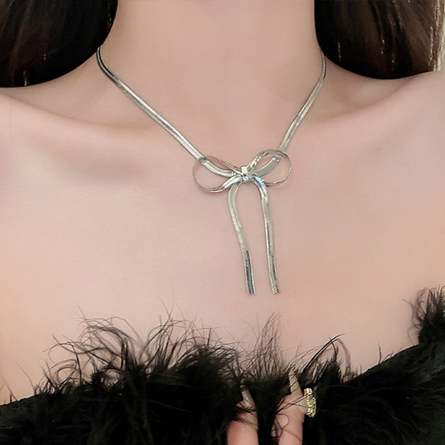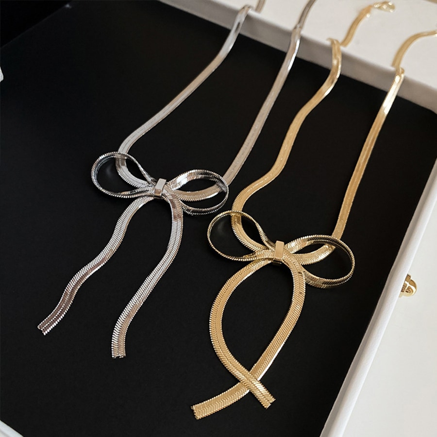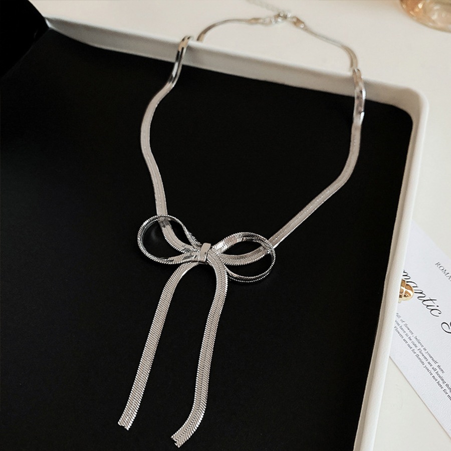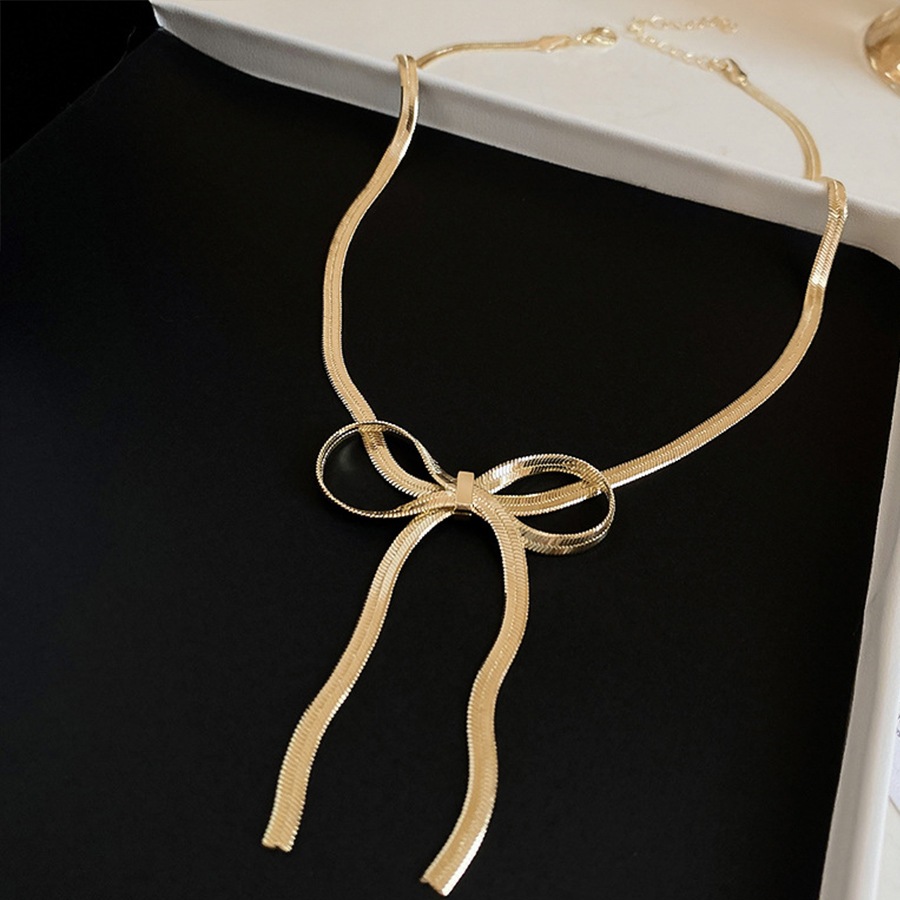 スネークチェーンをリボン結びしたデザインのネックレスです。