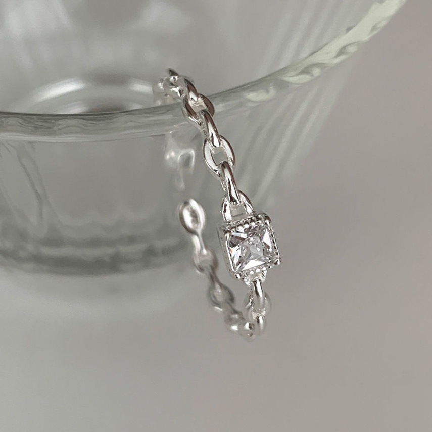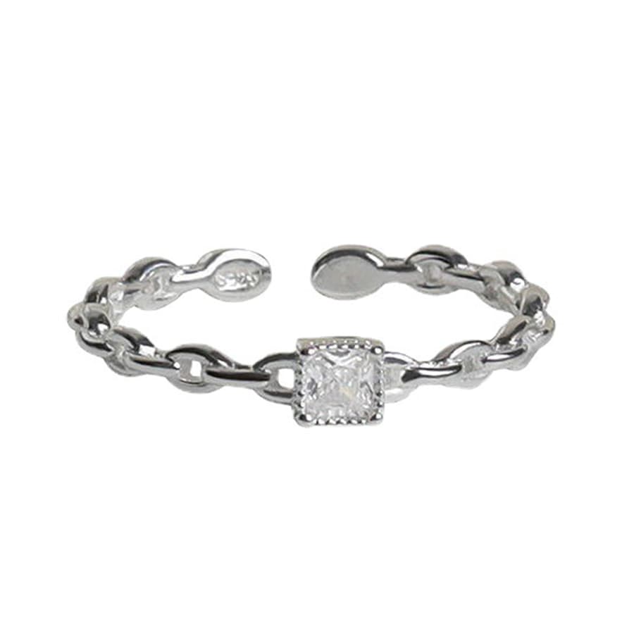 細身ながらもキラキラ反射するスクエア型のモチーフが程良いアクセントとなり上品な手元を演出してくれます。
