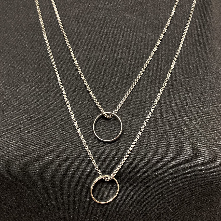 無地トップスに合わせてアクセントとしての使用はもちろん、柄物やレイヤードスタイルに合わせるとコーディネートを引き締めてくれます。