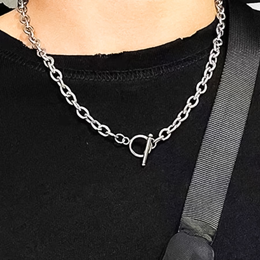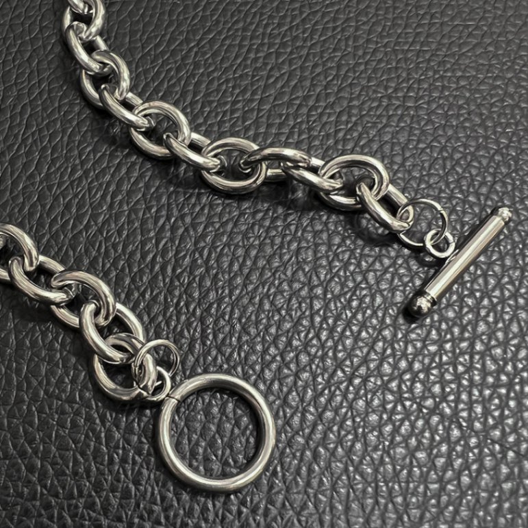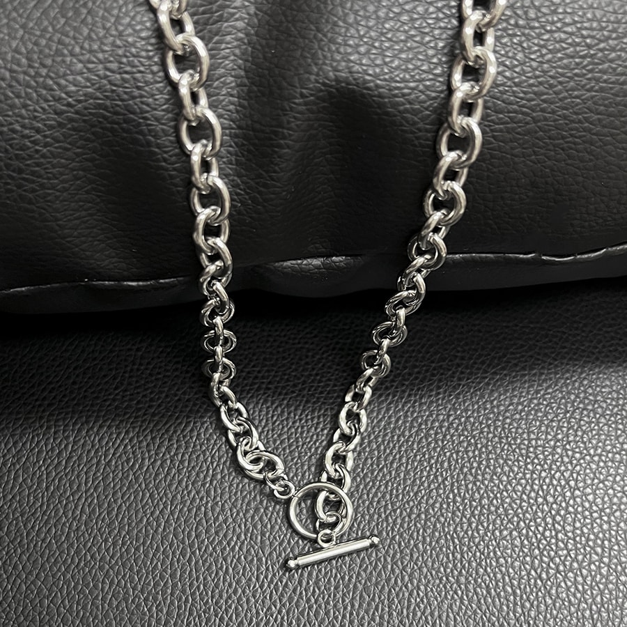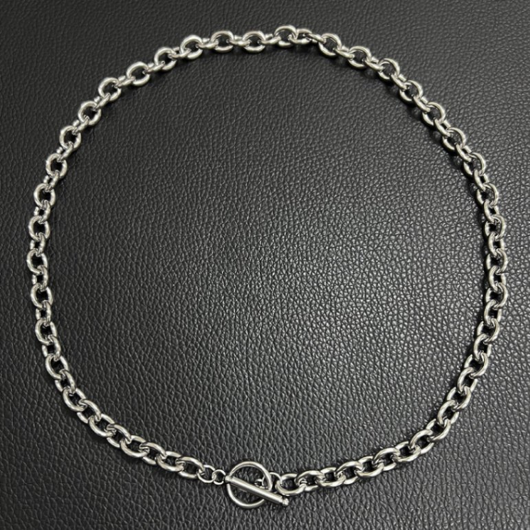 無骨な太めチェーンが存在感のあるシルバーネックレスです。